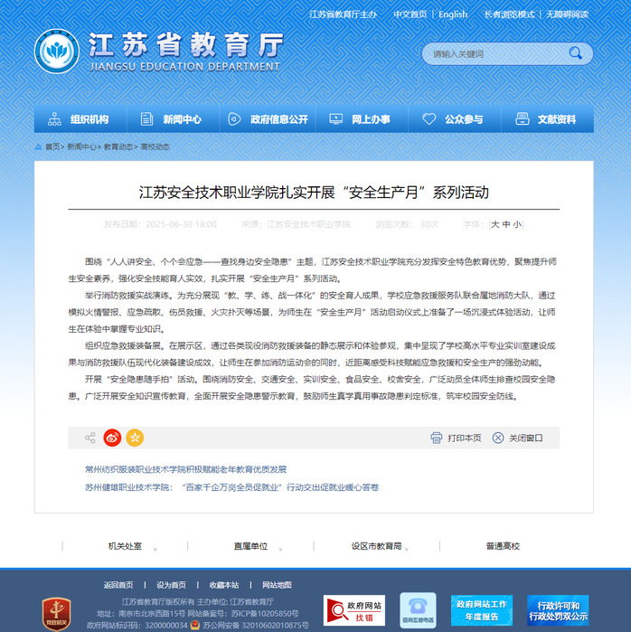 省教育厅:江苏安全技术职业学院扎实开展“安全生产月”系列活动
