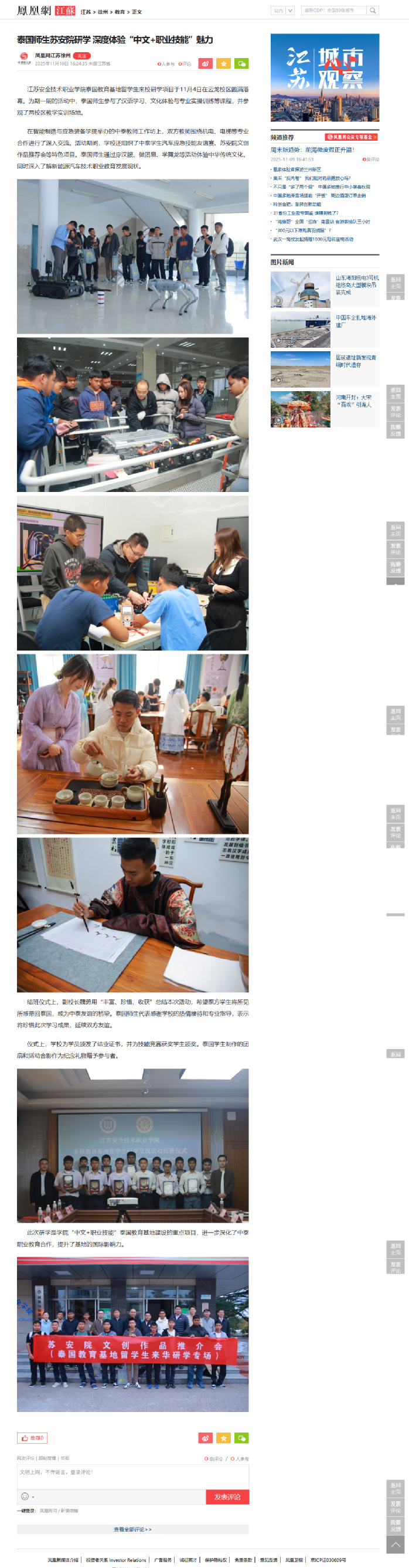 凤凰网江苏:泰国师生苏安院研学 深度体验“中文+职业技能”魅力