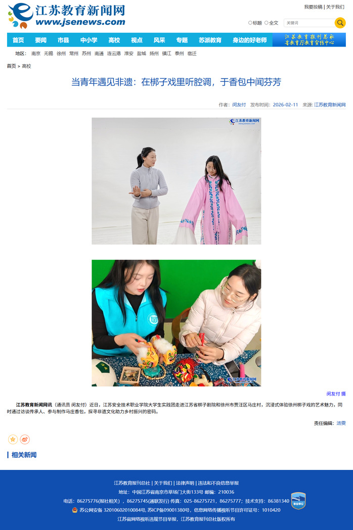 江苏教育新闻网:当青年遇见非遗:在梆子戏里听腔调,于香包中闻芬芳